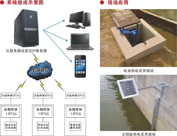 該裝置主要由感應(yīng)式水位傳感器、變送器、遠程終端控制系統(tǒng)(RTU)、無線終端(DTU)及系統(tǒng)軟件組成。