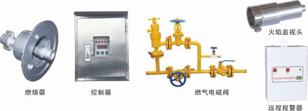 該裝置主要由燃燒器、火焰監(jiān)視頭、控制箱、燃氣電磁閥、遠程報警器組成。